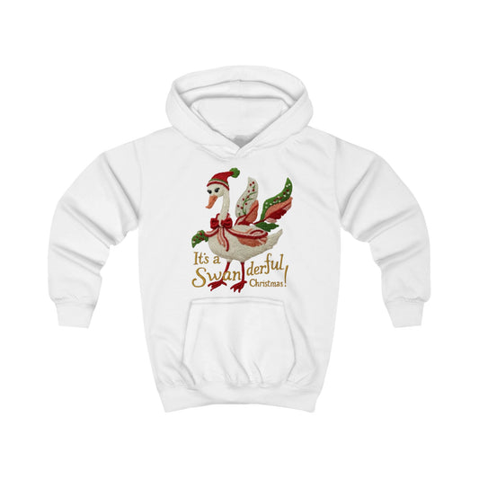 Festive Kids Hoodie - "It's a SWANderful Christmas" Christmas Swan Holiday Sweatshirt