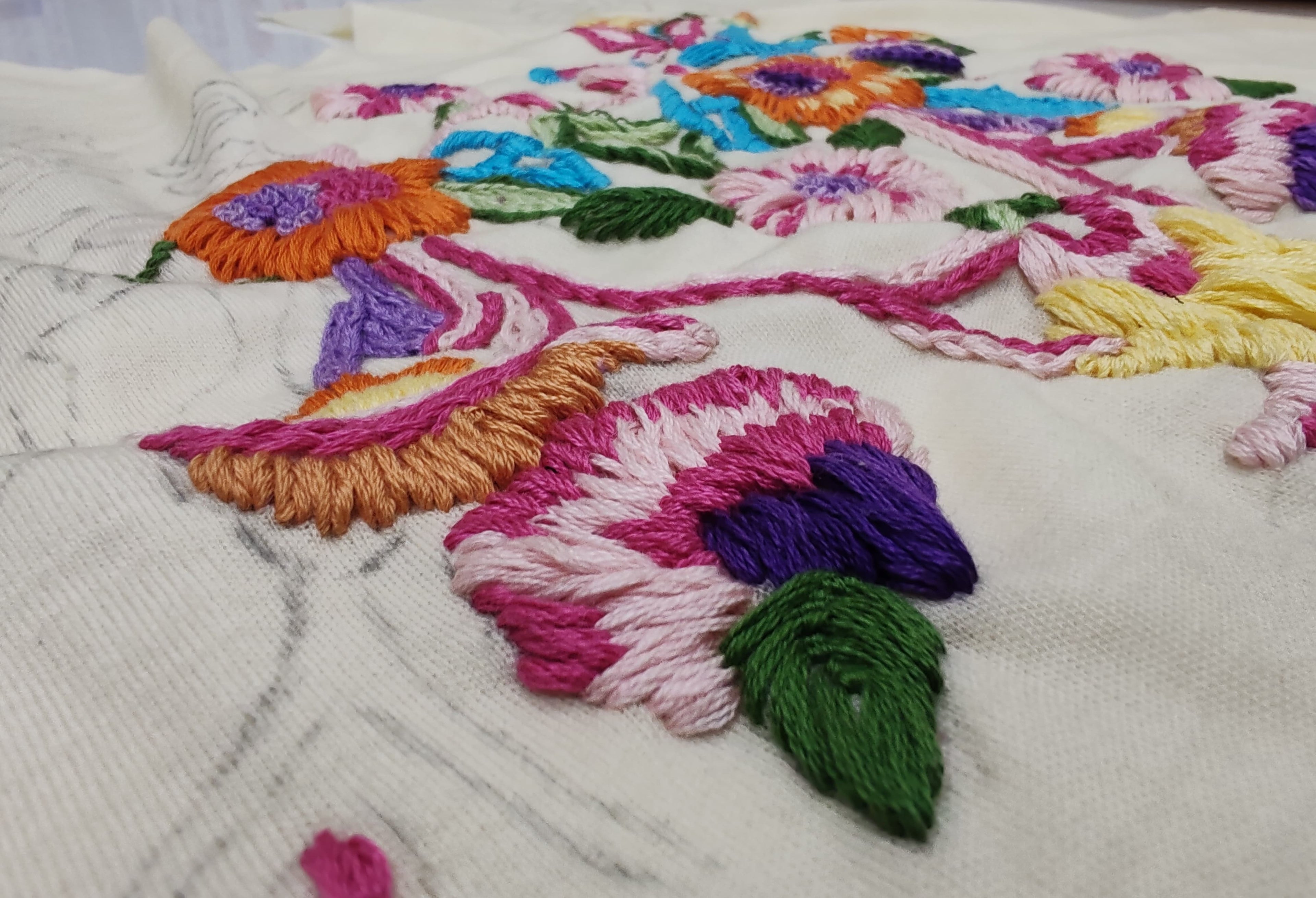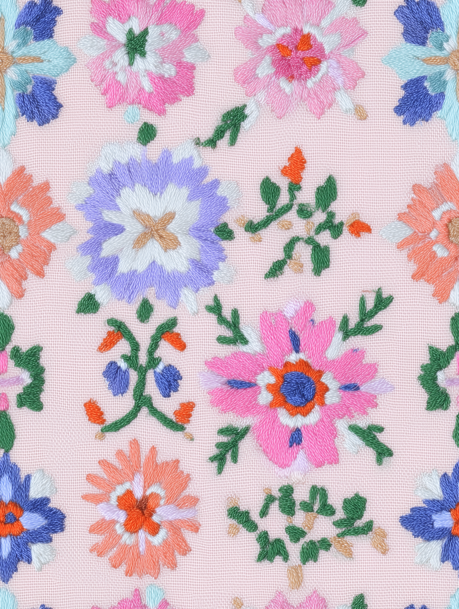 We trained our own AI model to create embroidered motifs as prompted, in the style of our delicate embroidery (Tatreez) real, physical samples and style.